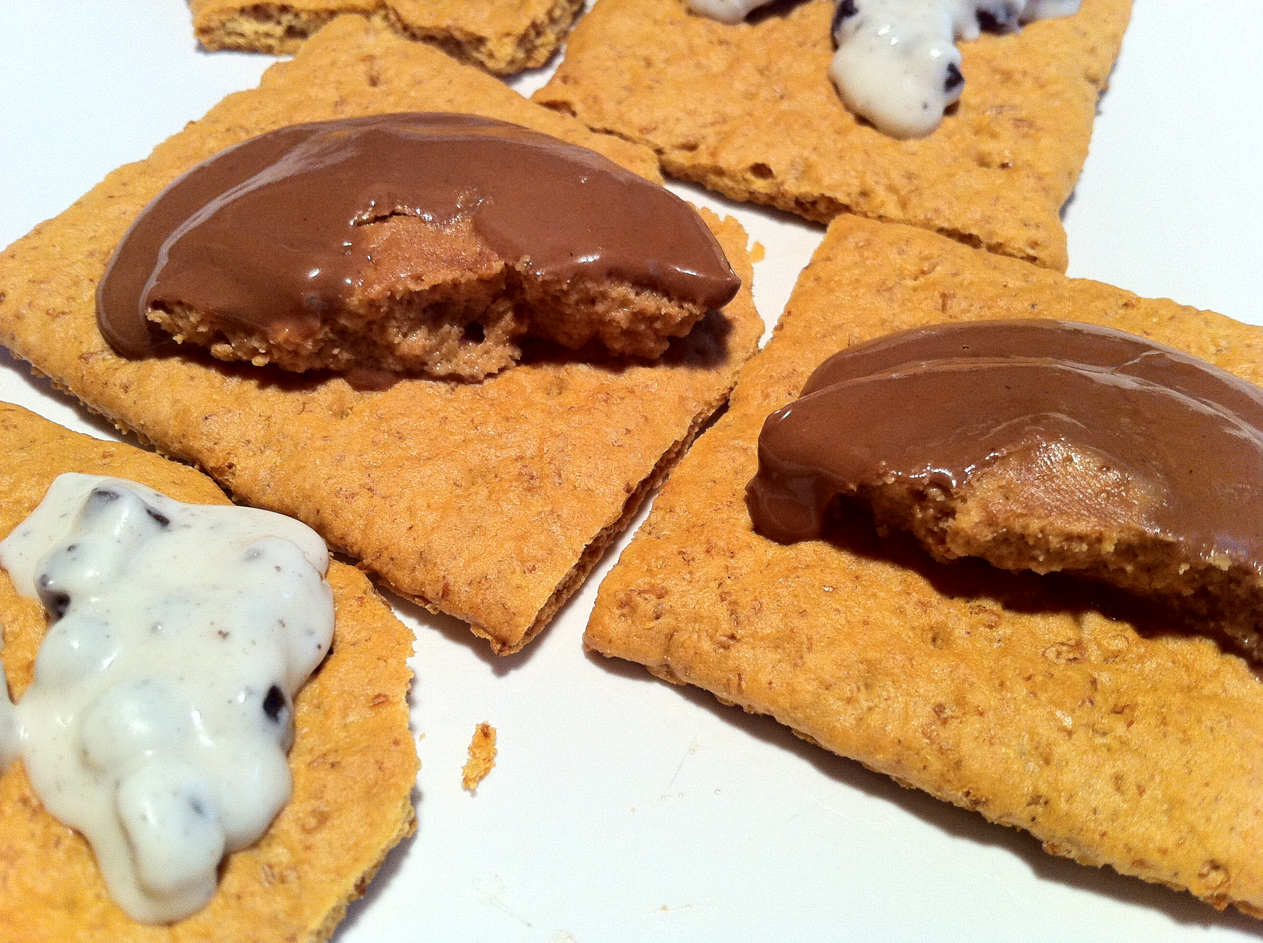 The recipe is really the standard S’mores recipe, only we substitute the chocolate for Reese’s cups. You could probably do the same with your favourite chocolate. My sister likes the Hershey’s Cookies and Cream so we had some of those as well.