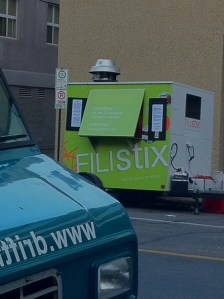 And not all food trucks were sold out, when we first arrived I noticed that Funky PIckle and Fat Franks were virtually lineless amidst the long lines at the other trucks. Most of the people stopping by for pizza and hot dogs were parents with young children. As hunger set in, more and more people started admiring the hot dogs with the crazy toppings and the gooey pizza like water in a desert. I was hearing people in line-ups saying, “You know what, this hot dog with wasabi mayo is REALLY good”.