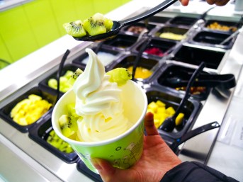 I’ve tried a variety of their yogurt flavours: Mango, Taro, Pistachio, Pumpkin Pie, TF Tart, Cookies and Cream, Death by Chocolate, etc. and although never disappointed, my favourite is still Pineapple, usually topped with fruit, my beloved mochi, and maybe something for crunch. I find Tutti Frutti offers a good balance of traditional yogurt flavours (ex. Pistachio, Death by Chocolate), inventive flavours (Pumpkin Pie, Red Velvet Yogurt), and flavours with an Asian undertone (ex. Green Tea, Taro)… the same goes for their toppings. I’m assuming the balance comes from having a Korean-American founder, their own Tutti Frutti development team, and research kitchen.