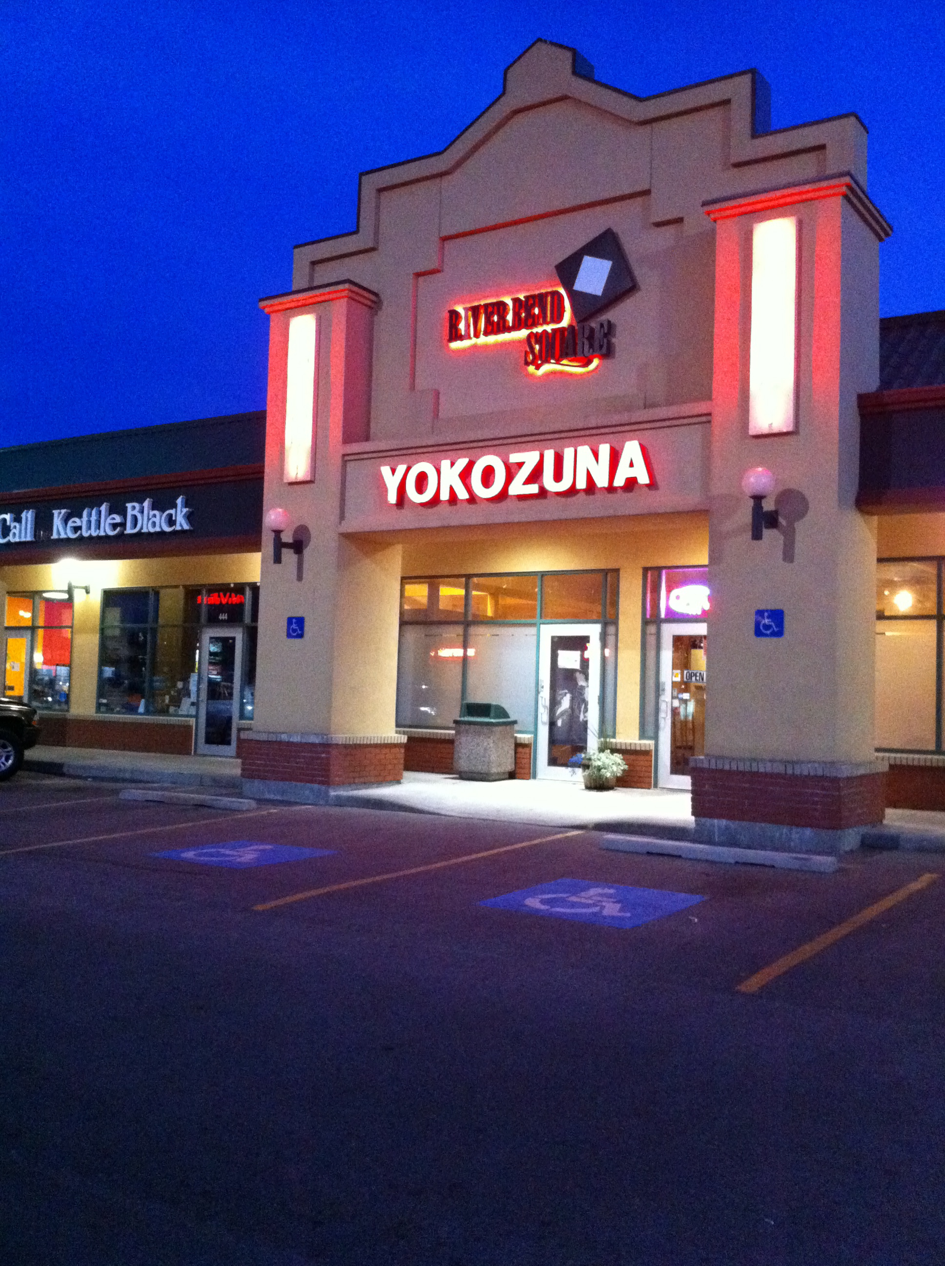 I contemplated hitting up one of the places on my growing list of Edmonton sushi restaurants, but felt adventurous and decided to try my luck via Yelp and Urbanspoon apps, Yokozuna on 106 St came up as a place with 4 stars from 5 reviews (Yelp) and 89% out of 82 votes like it (Urbanspoon). All 3 locations of Yokozuna are owned by one owner, and they have a location in Riverbend, which is just 10 minutes away from us – *ding ding ding* Winner, winner, sushi dinner!